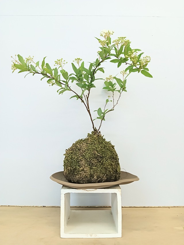 コデマリは、4月~5月頃に小さくて白い花が集まり、 手毬のような房状になって枝垂れる姿が美しい落葉低木です。 秋には紅葉も楽しめます。 耐寒性・耐暑性が強く、初心者でも育てやすいです。 皿付きです。 ※画像は見本です。 時期によって花や実が付いていないことがあります。 お届けする物は画像とは異なりますのでご了承下さいませ。 ※苔玉製作の際、または発送時に検品はしておりますが、 まれに虫が付いていることがあります。 ご了承くださいませ。