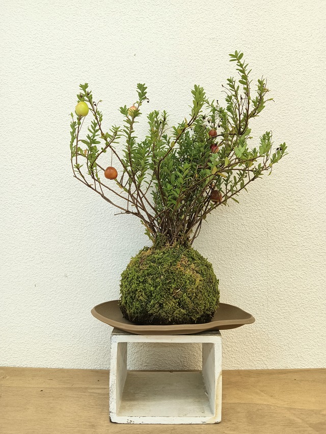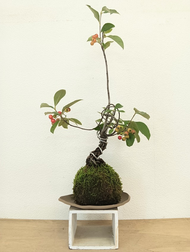 春に小さい花が咲き、 その後秋には赤い実がなります。 皿付きです。 ※画像は見本です。 時期によっては花や実が付いていないものもあります。 お届けする物は画像とは異なりますのでご了承下さいませ。 ※苔玉製作の際、または発送時に検品はしておりますが、 まれに虫が付いていることがあります。 ご了承くださいませ。