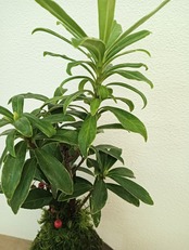 沈丁花と赤い実が可愛いヤブコウジのミックス苔玉です。