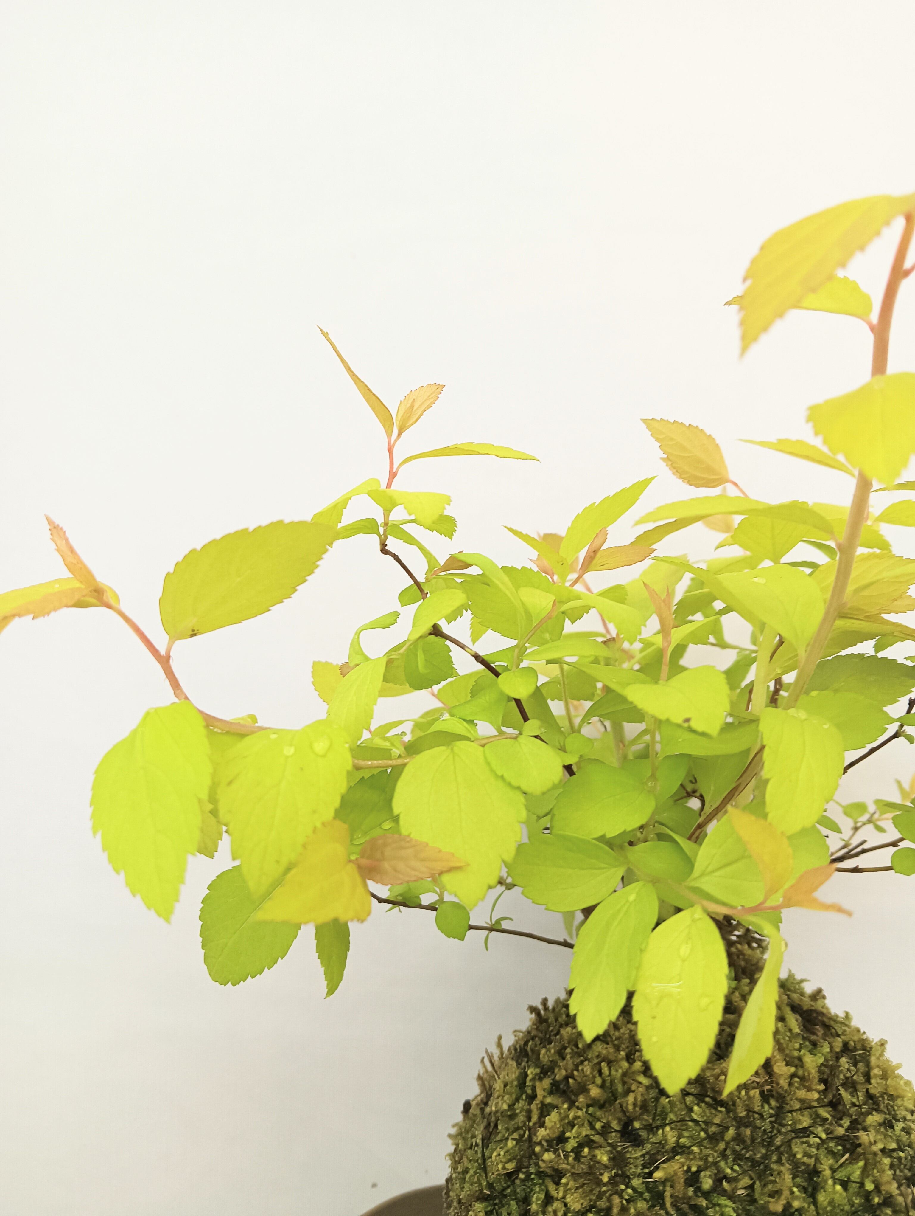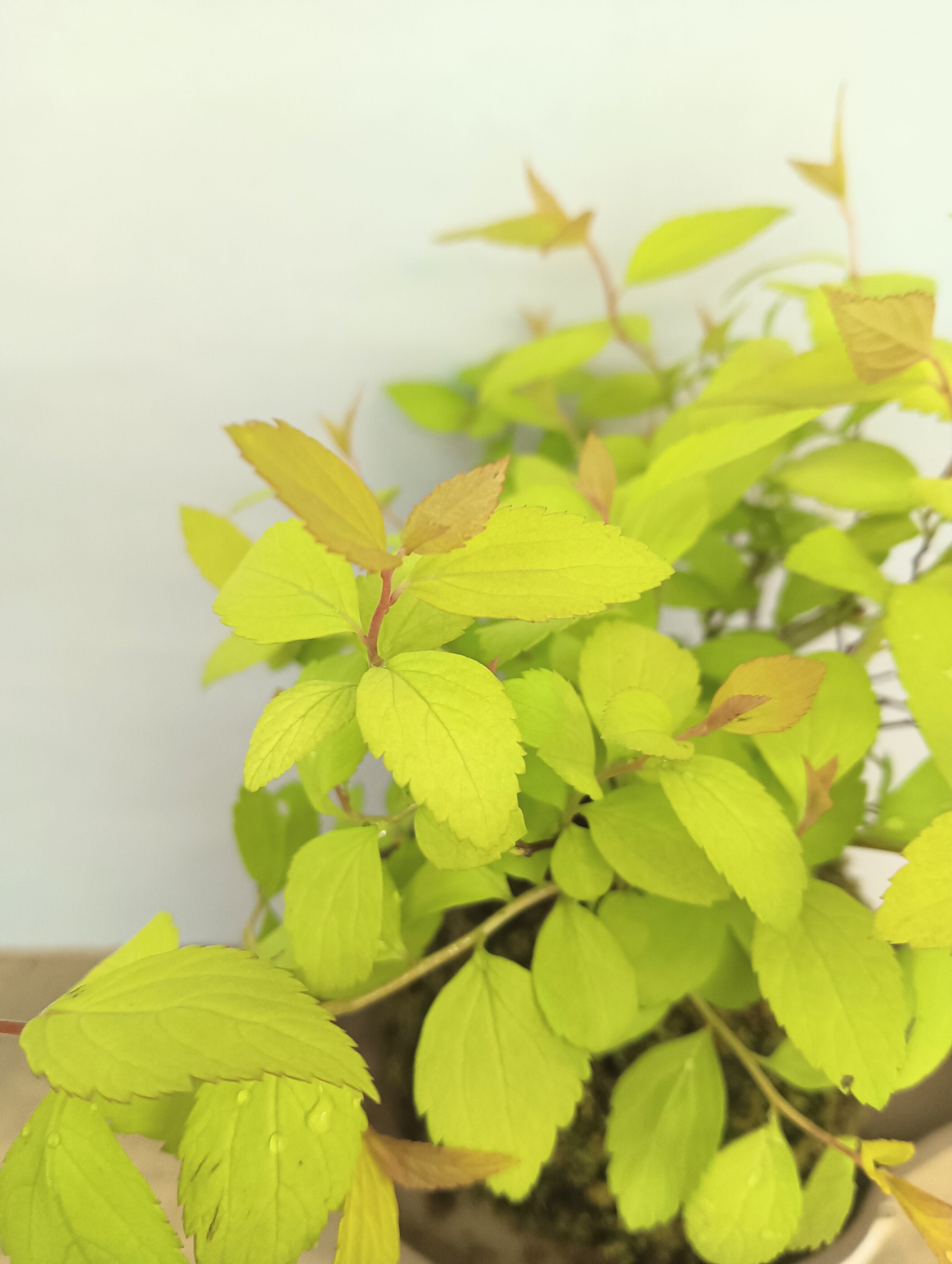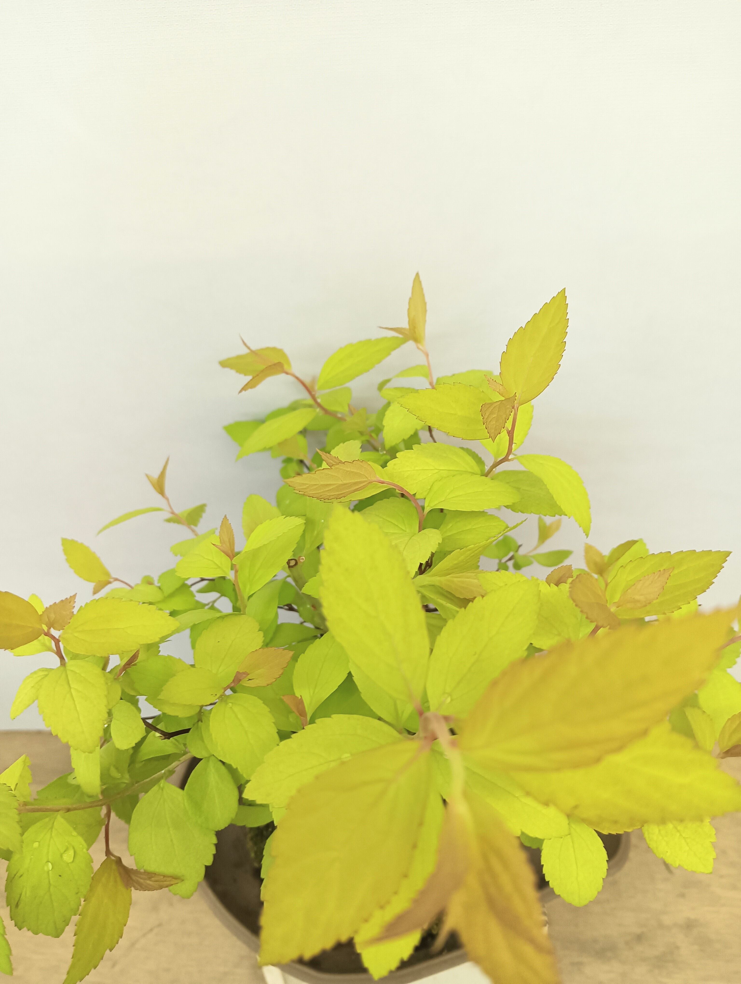 鮮やかなライム色の葉に新芽の赤や黄色の対比が美しいです。